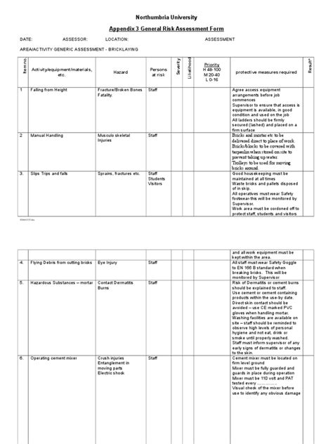 [UniqueID] - Read example risk assessment bricklayers pdf hse Doc